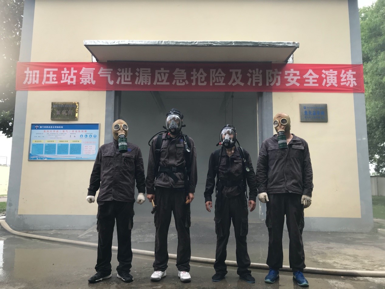加壓站開(kāi)展氯氣泄漏應(yīng)急搶險(xiǎn)及消防安全演習(xí)