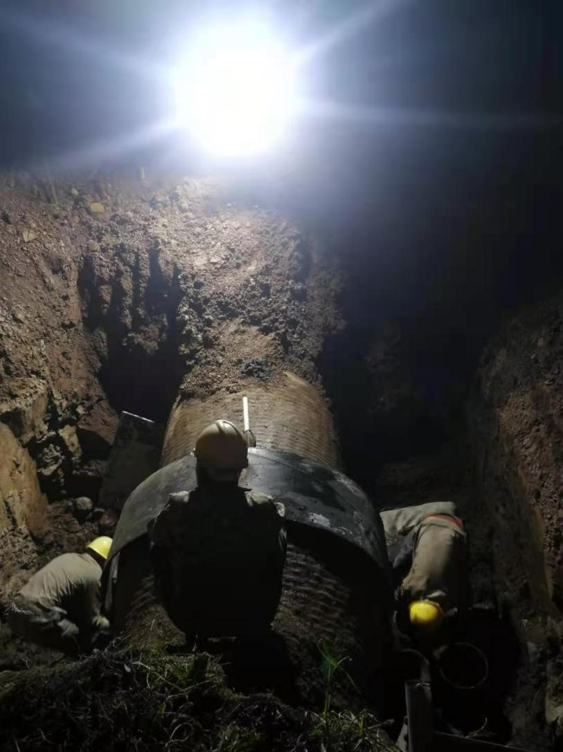 節(jié)假日的堅守,只為保障居民正常用水?!拔逡弧毙¢L假期間,安裝公司施工團隊放棄與家人的團聚,默默堅守在施工一線,用自己的實際行動確保了荊門城區(qū)的居民正常用水安全。51日晚2100,經過割接施工方案優(yōu)化,物資儲備等一系列前期準備后,DN1200源水管線管網開始降水,搶口工作正式開始,經過近5個小時的精心施工后,52日凌晨3時左右,隨著最后一塊開孔封蓋焊接結束,DN1200源水管線搶扣工作正式宣告完成。
