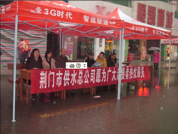 3月15日,市供水總公司黨委書(shū)記、副總經(jīng)理陳永根率客服中心、二供所等窗口人員,冒雨在中天街開(kāi)展消費(fèi)日活動(dòng),宣傳供水政策知識(shí)、現(xiàn)場(chǎng)接受用戶咨詢、認(rèn)真開(kāi)展服務(wù)。
