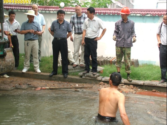 7月16日上午10:30左右,白云大道老水泥廠門(mén)口DN1200米供水主管突然爆裂,導(dǎo)致城區(qū)水壓降低,白云大道鐵路大橋以北、塔影路口以南地段、天鵝路等處部分用戶(hù)停水,市供水總公司組織送水車(chē)為停水地段用戶(hù)送水,經(jīng)全力搶修,于下午3時(shí)30分恢復(fù)供水。圖為搶修現(xiàn)場(chǎng)。