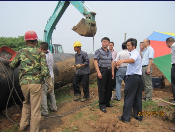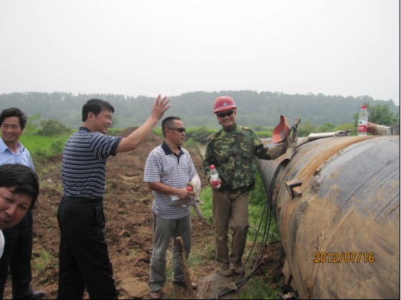 總經(jīng)理陳衛(wèi)國(左四)、黨委書記陳永根(右二)在城區(qū)安全飲水工程施工現(xiàn)場聽取施工負(fù)責(zé)人匯報,要求加快進程,確保質(zhì)量,按時完工,向全市人民交上一份合格答卷。