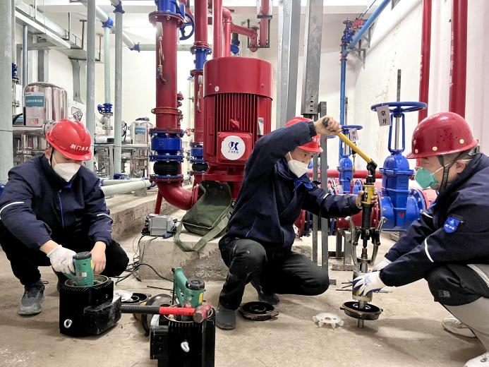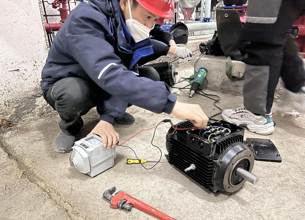 新年伊始,集團(tuán)營抄中心接到電話求助,反映京奧·城市奧特萊斯廣場無水。維修人員立即響應(yīng),僅用6分鐘便趕赴現(xiàn)場。經(jīng)初步排查,發(fā)現(xiàn)因泵房電機(jī)進(jìn)水,自控系統(tǒng)失效、泵機(jī)不運(yùn)作,導(dǎo)致無法供水。演練多日,用在一時。維修班長快速分工,班員們各司其職,迅速投入“戰(zhàn)斗”。一人操作控制系統(tǒng),兩人現(xiàn)場快速拆機(jī),更換進(jìn)水軸承,烘干定子線圈和轉(zhuǎn)子,對線圈進(jìn)行絕緣處理,整個過程一氣呵成,有條不紊。三人同步作業(yè),最終僅耗時4個多小時,完成6臺電機(jī)搶修,恢復(fù)了供水。24小時后,維修人員再探現(xiàn)場,復(fù)查數(shù)據(jù)參數(shù)和供水壓力,加固所有連接件,確保萬無一失。