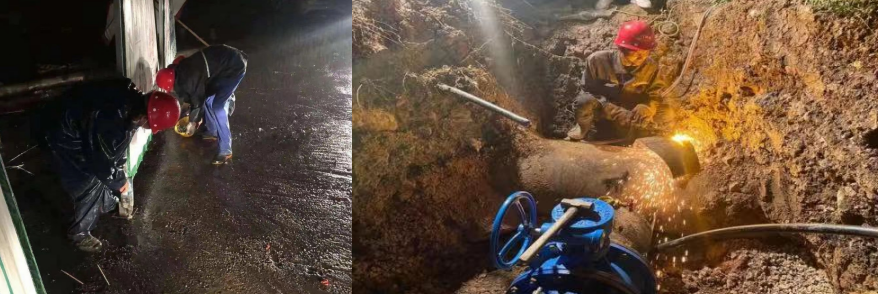 2020年1月28日上午,集團(tuán)維修公司接到用戶電話,反映塔影路與白云大道交匯處爆管。搶修隊(duì)伍聞令而動(dòng),立即趕赴現(xiàn)場(chǎng),在了解具體情況后,黨員吳英煉帶頭與時(shí)間賽跑,克服地面硬化、并行管道多、不能通過(guò)機(jī)械開挖等諸多不利因素,人工開鑿,找準(zhǔn)漏點(diǎn),鏖戰(zhàn)3小時(shí),終于趕在中午“飯點(diǎn)”恢復(fù)供水,解決了用戶的“燃眉之急”。