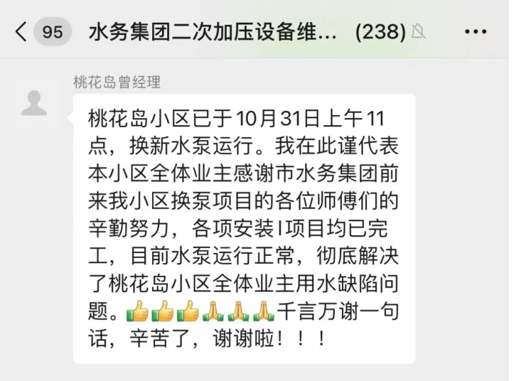 目前,東寶區(qū)現(xiàn)代花園小區(qū)二次供水泵房已完成基礎(chǔ)設(shè)施改造,待設(shè)備到貨后即可安裝、調(diào)試,投運。第一批其余10個小區(qū)二次供水泵房改造已完成圖紙會審,預計明年1月底全部完工。集團將堅持用戶至上服務(wù)宗旨,嚴格按照時間路線圖推進施工,保質(zhì)保量完成任務(wù)。改造過程中,我們將采取有效措施,最大程度減少對居正常生活帶來的不便,感謝廣大用戶的理解與支持。