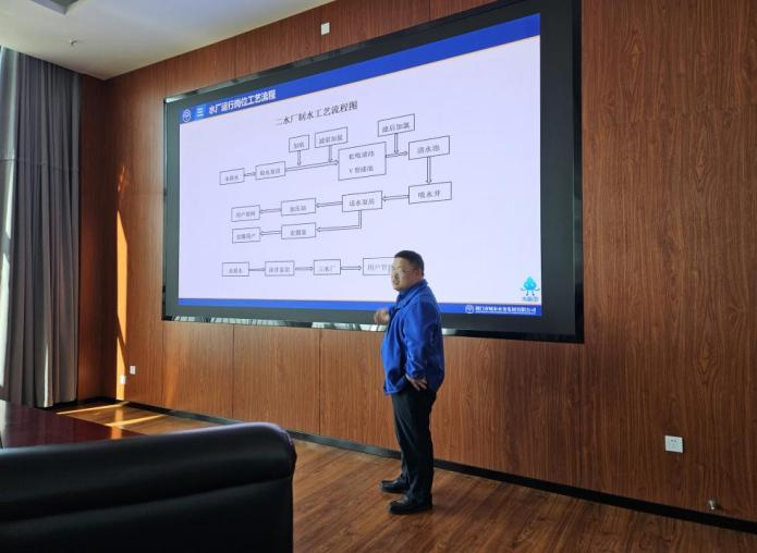 圖為二水廠副廠長(zhǎng)劉福成講解制水工藝流程