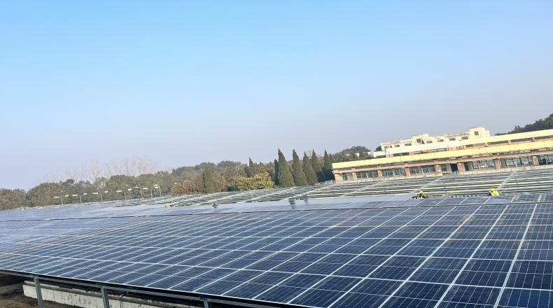 光伏產(chǎn)品是近年來推動我國外貿(mào)穩(wěn)規(guī)模、優(yōu)結(jié)構(gòu)的“新三樣”之一,水務集團積極響應國家“雙碳”政策,在充分調(diào)研基礎上,于2023年11月選址第二水廠,充分利用構(gòu)筑物上方空間,架設光伏系統(tǒng)和配套電氣設備,采用目前較為成熟的分布式光伏發(fā)電技術,裝機總?cè)萘?.968兆瓦,安裝光伏板1669塊。