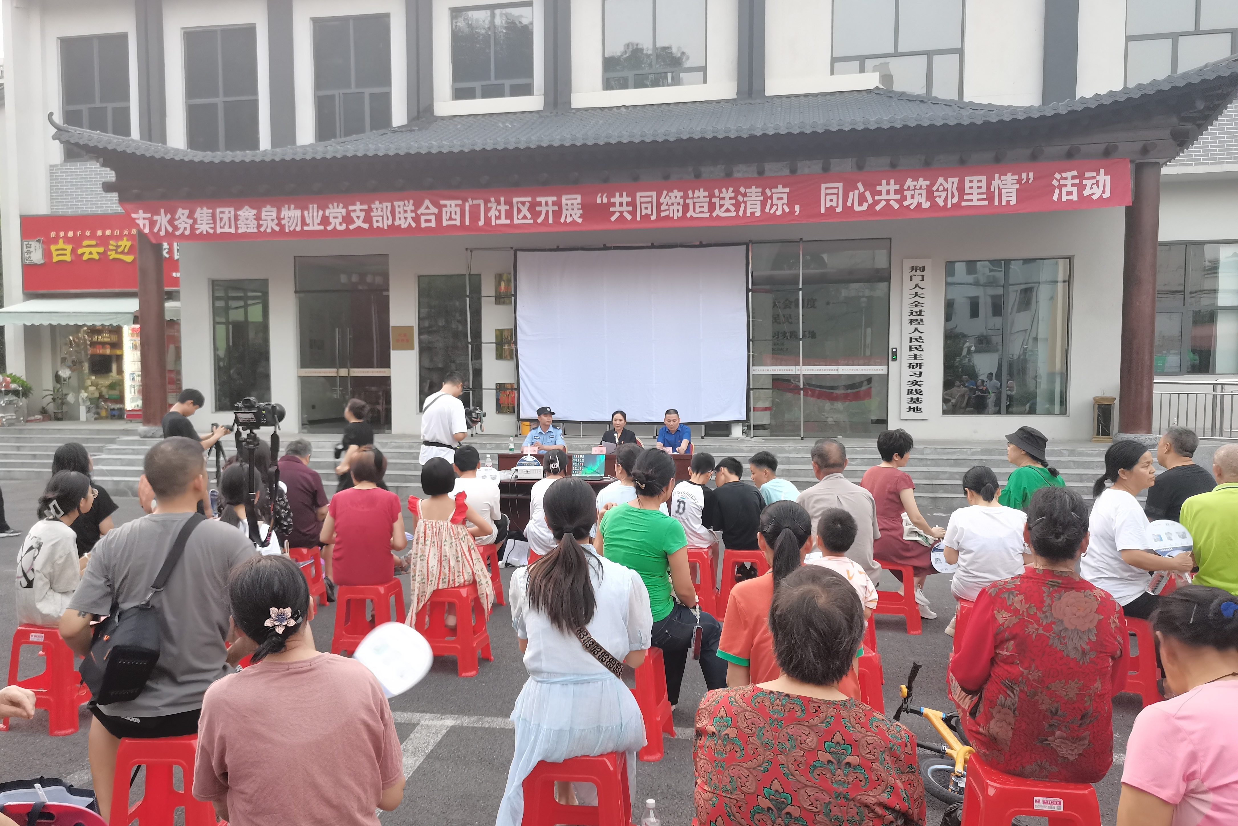 為深入學(xué)習(xí)貫徹黨的二十屆三中全會精神,落實習(xí)近平總書記關(guān)于打擊治理電信詐騙犯罪系列重要指示精神,8月15日晚,市水務(wù)集團(tuán)鑫泉物業(yè)黨支部聯(lián)合西門社區(qū)開展“共同締造送清涼,同心共筑鄰里情”暨反詐宣傳活動。