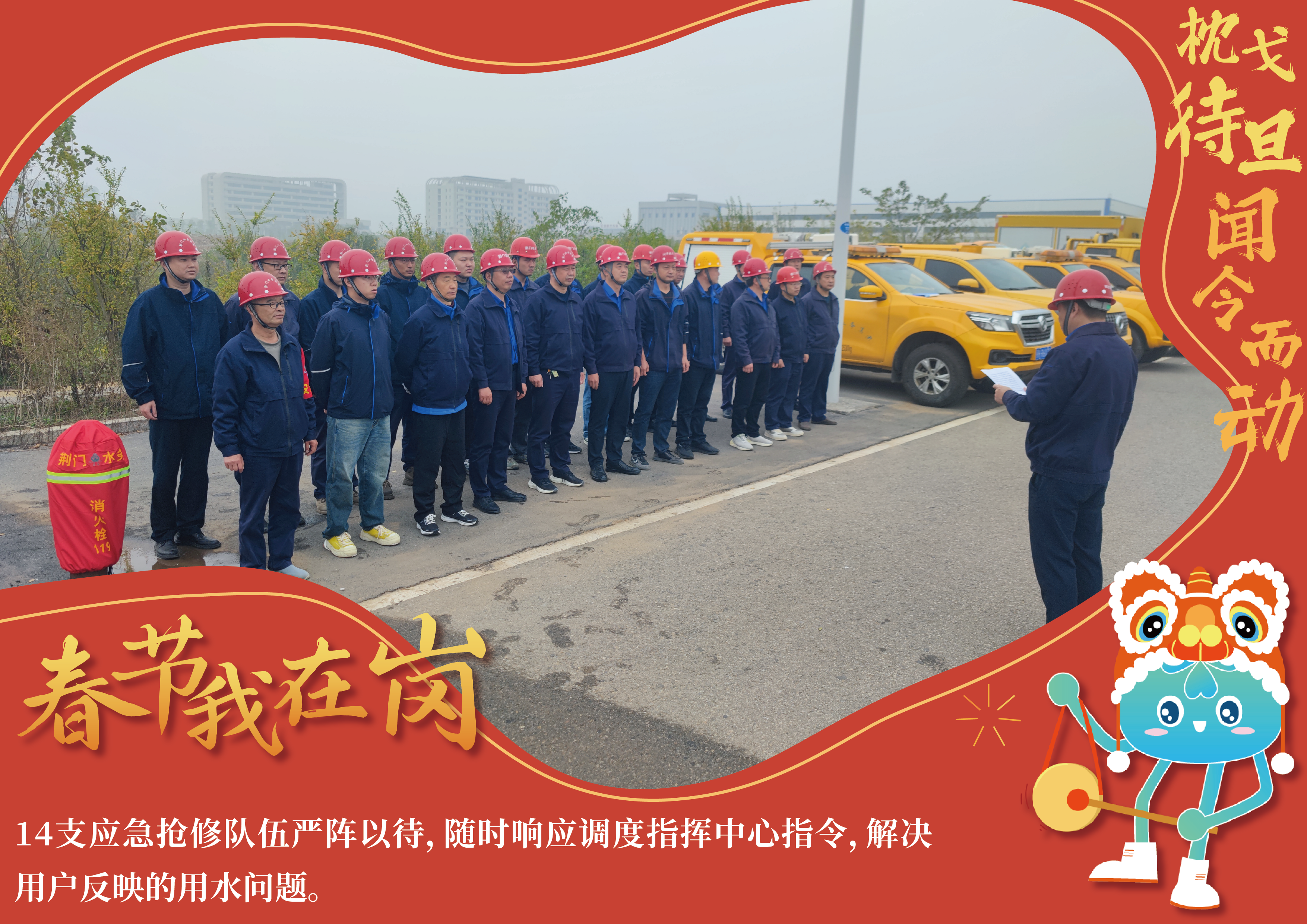 春節(jié)期間,在崗值守的水務(wù)鐵軍們將堅持用戶至上服務(wù)宗旨,默默守候在城市的各個角落,陪伴廣大市民用戶歡度新春佳節(jié)。