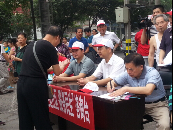 市住建委主任委員楊劍(中)、市供水總公司總經(jīng)理陳衛(wèi)國(左一)在“走進(jìn)社區(qū)、服務(wù)民生,走進(jìn)企業(yè)、服務(wù)發(fā)展”活動中,深入龍泉街辦團(tuán)結(jié)社區(qū)了解群眾訴求,解決具體問題。