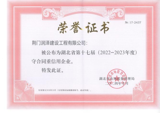 憑著“誠信為本、質(zhì)量為根”的堅(jiān)守,潤澤公司連續(xù)兩年獲評(píng)荊門市和湖北?。?022-2023年度)“守合同重信用企業(yè)”,市場(chǎng)競(jìng)爭力和品牌影響力持續(xù)攀升。