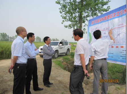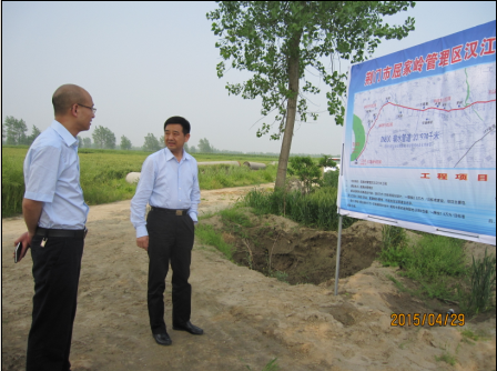 4月29日下午,市委副書記、市長肖菊華、副市長鄭中華在屈家?guī)X、市水務局等相關部門、市住建委黨委書記、主任楊劍、市供水總公司黨委書記、總經理陳永根陪同下視察漢江引水工程現場,肖市長要求市水務局配合屈家?guī)X政府抓緊辦理完善項目前期手續(xù);啟動加快財評、招投標等相關手續(xù);加快推動工程建設。市住建委黨委書記、主任楊劍表示漢江引水工程手續(xù)完備后,按照肖市長時限要求,兩個月內完成全線施工,要求市供水總公司制定兩個月施工方案,倒排工期,精心組織,確保完成。
