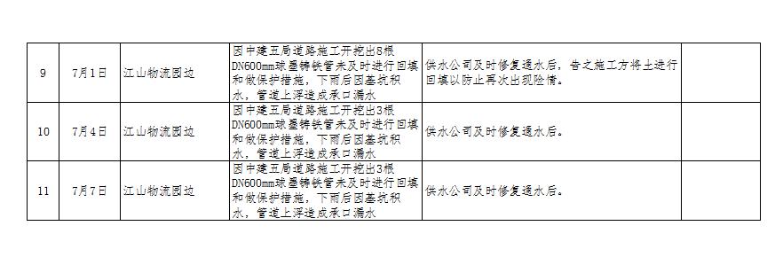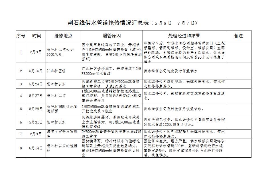 附:1、《荊石線供水管道搶修情況匯總表(5月9日-7月7日)》