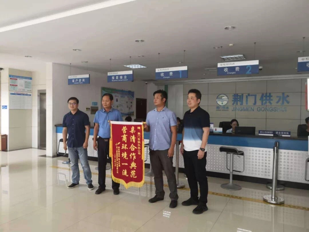 “每次來報裝,就像回到家里一樣!感謝市供水總公司十年以來一如既往的貼心服務!”近日,荊門碧桂園房地產開發(fā)有限公司項目副總經理游明虎將一面寫有“親清合作典范,營商環(huán)境一流”的錦旗送到市供水總公司。